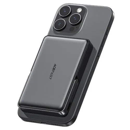 The Acefast M17 10,000mAh Fast Charging Power Bank is engineered for multitaskers and tech-savvy users. This ultra-thin and lightweight power bank combines high-capacity performance with convenience. With a rated output of 6,000mAh and support for PD3.0, QC3.0, AFC, and SCP protocols, it delivers blazing-fast 22.5W USB-C charging and up to 15W wireless output ideal for iPhones, Android smartphones, earbuds, and tablets. Crafted from flame-retardant PC and aluminum alloy, the Acefast M17 is scratch-resistant and built to last. Its magnetic wireless charging feature ensures secure attachment, while the foldable stand offers hands-free viewing for video calls or streaming. Smart LED indicators provide real-time battery and charging status at a glance. Certified with CE, FCC, RoHS, EAC, and UKCA, this Acefast power bank guarantees safety and reliability. Acefast M17 is designed for swift and reliable charging companion for all your mobile devices.