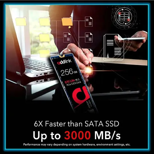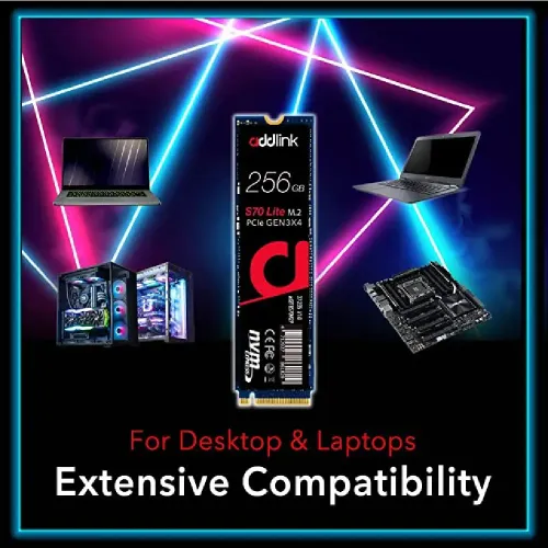 The Addlink S70 Lite M.2 2280 NVMe PCIe Gen3 x4 SSD is a high-speed and energy-efficient NVMe SSD designed to upgrade your PC or laptop performance. Built with the PCIe Gen3 x4 interface, it delivers significantly faster speeds compared to traditional SATA SSDs and HDDs, making it ideal for everyday computing, office work, and multitasking. With read speeds up to 3500MB/s, the S70 Lite ensures faster boot times, quick application launches, and smooth file transfers. Its DRAM-less design with SLC caching and Host Memory Buffer (HMB) enhances real-world performance while maintaining lower power consumption, making it a great choice for laptops and ultrabooks. Constructed with 3D NAND Flash, the SSD includes advanced reliability features such as LDPC ECC, wear leveling, bad block management, and over-provisioning, ensuring long-term durability and stable performance. It also operates at a cool temperature range (40–60°C), helping maintain system efficiency and comfort during extended use. Compatible with both Intel and AMD platforms, the Addlink S70 Lite NVMe SSD fits most desktops and laptops with an M.2 2280 slot.
