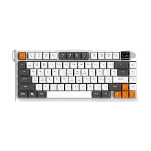 The Ajazz AF82 Tri Mode Wireless Keyboard is a compact 75% layout keyboard with wired, 2.4GHz wireless, and Bluetooth connectivity. Featuring 82 ergonomic keys, customizable RGB backlighting, a multimedia knob, and a powerful 4000mAh battery, this Ajazz Keyboard combines style, portability, and performance, making it an excellent Ajazz Gaming Keyboard for both work and play.