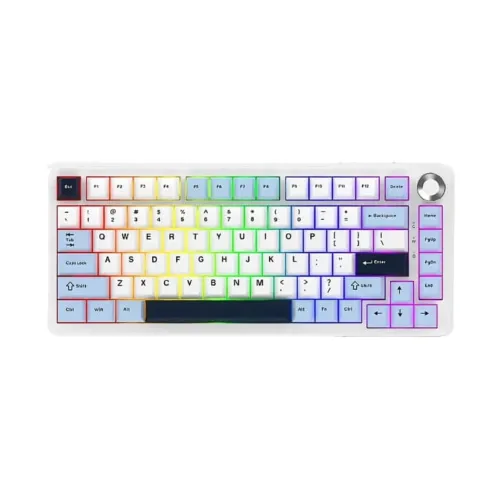 The Ajazz AK820 Max Plus Tri-Mode Mechanical Keyboard Without Display offers a more ergonomic rounded case and a modernized control knob for improved usability. It retains the best features of its predecessor while enhancing the typing experience with a 1.2mm flex-cut PCB that delivers softer, more elastic keystrokes. The hot-swappable design allows users to easily customize switches to suit their preferences. Advanced sound engineering includes multiple layers of dampening materials silicone base, dual cotton layers, and an IXPE switch pad that work together to produce a pleasant acoustic profile with minimal noise. Constructed with a PC plate, the AJAZZ AK820 MAX Plus Tri-Mode keyboard balances the stability of aluminum with the flexibility of polycarbonate, ensuring consistent and comfortable feedback. Connectivity is seamless with support for 2.4GHz wireless, Bluetooth, and USB wired modes, powered by a robust 8000mAh battery that incorporates power-saving technology for extended use. South-facing RGB illumination offers 16 preset effects and includes audio perception technology that syncs lighting with music for an immersive experience. Ergonomics are further enhanced by a double-stage adjustable footrest with anti-slip rubber pads, allowing users to find their ideal typing angle while maintaining stability. The Ajazz AK820 Max Plus Tri-Mode is a compact 75% mechanical keyboard featuring 82 keys and Flying Fish and Day Dream switches for smooth, responsive typing. Whether you're deep into a gaming session its ergonomic build makes it a reliable companion.