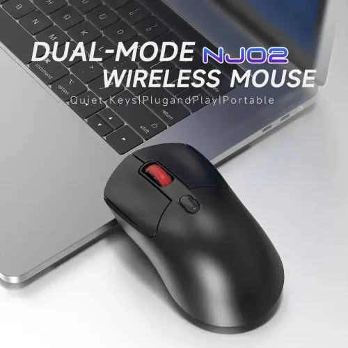 The AJAZZ NJ02 Dual Mode Wireless Mouse is a small and versatile mouse for modern users who value flexibility, comfort, and silent performance. AJAZZ Wireless Mouse provides dual connectivity via dependable 2.4GHz wireless and Bluetooth 5.0, allowing for effortless switching between devices for work or study. The AJAZZ NJ02 Wireless Mouse has four responsive keys and one smooth scroll wheel, providing simple yet effective control for daily chores. The AJAZZ NJ02 Bluetooth Mouse has changeable DPI settings of 800, 1200, and 1600, ensuring accurate tracking for surfing, office use, and light work. The AJAZZ Wireless Mouse is designed with a lightweight 68g weight and a balanced center of gravity to reduce hand fatigue during extended use. Quiet keys offer noise-free clicking, making the AJAZZ NJ02 Wireless Mouse ideal for shared spaces, offices, and late-night work. A 3D anti-slip scroll wheel enhances precision and control, while the matte finish surface provides a refined feel. Anti-slip side wings improve grip stability and comfort, enabling confident movement. The AJAZZ Bluetooth Mouse is powered by a single AA battery and provides simple operation without the need for regular recharging. The AJAZZ NJ02 Dual Mode Wireless Mouse's ergonomic design makes it easy to use on a regular basis. The AJAZZ Wireless Mouse's simple connection, stable wireless performance, and energy-efficient design ensure its dependability across various devices.