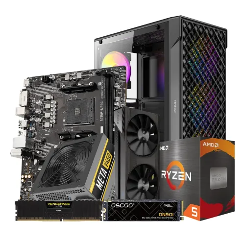 Introducing the AMD Ryzen 5 5500 Gaming PC, a beast designed for peak gaming and computing performance. At its heart lies the AMD Ryzen 5 5500 Processor, which is combined with the MSI A520M-A Pro AM4 AMD Micro-ATX Motherboard to provide a powerful and durable base. The OSCOO ON901 512GB PCIe NVMe M.2 SSD provides lightning-fast storage, and the single Corsair Vengeance LPX 8GB 3200MHz DDR4 Desktop RAM sticks provide seamless multitasking. The GUNNIR Intel Arc A380 Index 6G GDDR6 Graphics Card delivers outstanding visuals that improve your gaming experience. This AMD Gaming PC is powered by the Antec META V450 450W Power Supply, which provides dependable and efficient power delivery. All of these components are housed in the beautiful Antec VX320 ARGB Mid Tower ATX Gaming Casing, which provides excellent cooling and aesthetic appeal. The AMD Ryzen 5 5500 Gaming PC is ideal for avid gamers and creative professionals, providing a balance of performance, dependability, and style to fulfill all of your computing needs.