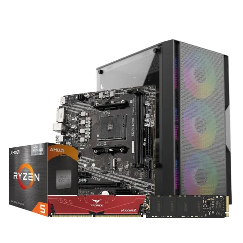 The AMD Ryzen 5 5600GT Budget Desktop PC is a budget-friendly, powerful system ideal for casual gamers and people looking for a good mix of performance and price. The AMD Ryzen 5 5600GT AM4 processor, which has integrated Radeon Graphics and provides great processing power for gaming and multitasking without the need for a separate GPU, is at the core of this setup. Paired with Corsair Vengeance LPX 8GB 3200MHz DDR4 Desktop RAM clocked at 3200MHz, this PC offers smooth performance for most modern applications and games, ensuring faster load times and responsiveness. The Lexar NM620 256GB M.2 NVMe SSD manages storage, improving user experience overall with fast data access and short startup times. This AMD Ryzen 5 5600GT Budget Desktop PC is housed in the elegant yet small T-Wolf Phantom X4 RGB M-ATX Mid Tower Gaming Case With 200W PSU, which has a mesh front panel for the best cooling and ventilation. A power supply unit (PSU) is also included in the enclosure, guaranteeing effective energy management for every component. The MSI A520M-A PRO AM4 ATX motherboard provides a strong base with future upgrade capability for connectivity and expansion. It has numerous expansion slots and ports to accommodate different add-ons and peripherals. The newest Ryzen processors are compatible with this motherboard, which guarantees dependable system stability. Those looking for a powerful yet affordable system can find what they need in the AMD Ryzen 5 5600GT Budget Desktop PC. Its powerful performance is suitable for daily computing, gaming, and productivity duties. It is all contained in a sleek, modern case that offers effective cooling and room for future upgrades, making it an adaptable option for both new and seasoned PC users.
