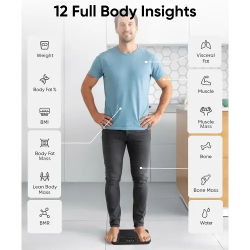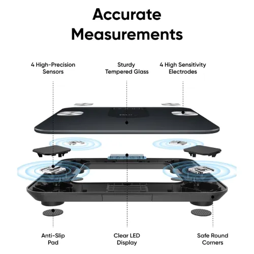 The Anker Eufy A1 Smart Scale can instantly provide 12 precise measurements of your body's health. The free Eufylife App, which works with third-party apps like Apple Health, Google Fit, and Fitbit, makes it easy to track and manage your health data. The Anker Eufy A1 Smart Scale's accuracy has increased by 10%, owing to two pairs of super-sensitive G-shaped sensors that offer precise and reliable measurements every time. The Eufy A1 Smart Scale is intended for the entire family and can monitor the health patterns of up to 16 people using a single account. It also instantaneously recognizes each member. The design focuses on safety and convenience, with a rounded-glass top plate to protect against sharp edges and an anti-slip top plate for stability while walking on it. This human weight scale's low, stable design enhances user safety and convenience. One notable feature is the quick conversion between pounds and kilograms, allowing you to switch units in less than a second. The Anker Eufy A1 smart body weight scale also boasts an instant Bluetooth connection, allowing for rapid wireless data transfer and displaying your measurements in seconds. The innovative architecture of the Eufy Smart Scale A1 ensures that measurements are promptly matched to the appropriate user profile, avoiding confusion.