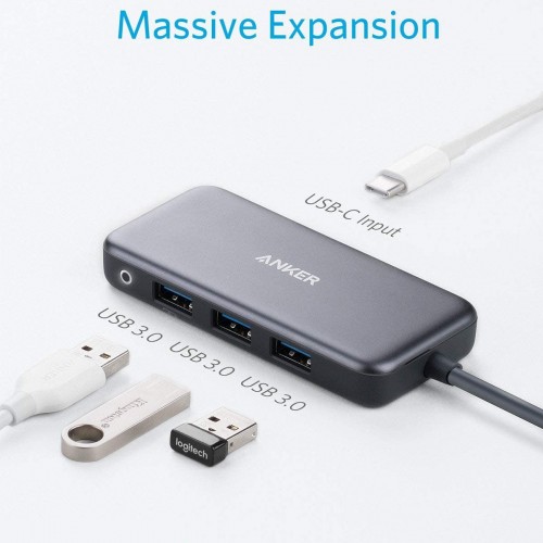The Anker Premium 4-in-1 Hub is designed to add 3 USB-A ports and a USB-C charging port to your MacBook—without missing a charge. The Anker Premium 4-in-1 Hub is able to provide maximum input of 60W minus 15W for the hub’s operation allows the hub to give your laptop up to an 45W pass-through charge while using other hub functions. Get your phone in on the high-speed charging action via the dedicated USB-A sync & charge port with a battery icon next to it. Designed to prevent overheating, keeping you and your devices safe. Keep your hub’s anodized surface scratch-free with the included travel pouch.
