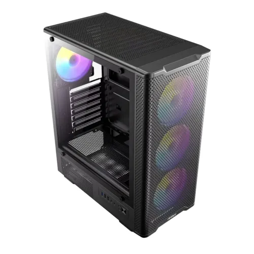 The Antec VX310 ARGB Mid Tower ATX Gaming Casing is engineered to meet the demands of modern gamers and PC enthusiasts. Designed with broad motherboard support, it easily fits ATX, Micro-ATX, and ITX motherboards, allowing flexibility whether you're building a compact rig or a full-sized gaming powerhouse. Its robust steel and plastic frame ensures durability and longevity, while the elegant tempered glass side panel offers a premium look that lets you showcase your internal hardware and vibrant ARGB lighting effects.This mid tower case provides enough internal space for top-tier hardware. It supports graphics cards up to 320mm in length, perfect for most high-end GPUs on the market, and CPU coolers up to 165mm in height, enabling efficient heat dissipation for better system stability. The case also accommodates power supplies up to 160mm with HDD installed or up to 325mm without HDD, giving you options for various PSU sizes and cable management preferences.Cooling is a major focus of the Antec VX310. It comes with 3 x 120mm ARGB fans pre-installed at the front and 1 x 120mm ARGB fan at the rear, providing optimal airflow to keep your components cool under load. The ARGB fans are customizable through the dedicated LED control button on the front panel, so you can personalize your lighting to match your gaming setup. The case supports extra fans on the top panel — either 2 x 140mm or 2 x 120mm — and 2 x 120mm on the power supply shroud, giving you flexibility to further enhance cooling performance.The front I/O panel is thoughtfully designed with practical features such as 1 USB 3.0 port, 2 USB 2.0 ports, microphone and headphone audio jacks, a reset button, and LED control button for quick access to essential functions. This setup ensures seamless connectivity without needing to reach behind the PC.Storage options include 3.5-inch drive bays for traditional hard drives, combined with support for SSDs (2.5-inch), so you can easily configure a hybrid storage solution for speed and capacity. The tempered glass side panel not only looks great but is easy to remove for upgrades and maintenance.Despite its sturdy build, the Antec VX310 is easy to handle during installation or transport. The overall design emphasizes a clean, modern aesthetic with a balance of functionality and style, making it a perfect choice for gaming setups, streaming rigs, or powerful workstations.The Antec VX310 ARGB Mid Tower Gaming Case assures users of quality and support. Whether you’re a first-time builder or upgrading your rig, this case delivers exceptional value with excellent airflow, attractive ARGB lighting, flexible hardware support, and practical design features — all in a durable and visually striking package.