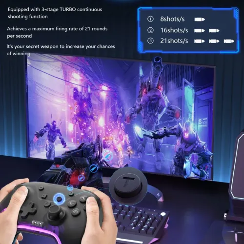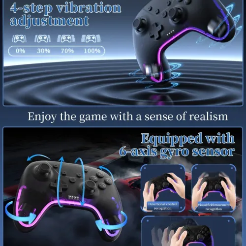 The Aolion AL-NS2288C Tri-Mode Wireless Gaming Controller provides an excellent balance of precision, comfort, and versatility. The Aolion Wireless Gaming Controller is designed to function across various platforms, with tri-mode communication via Bluetooth, 2.4GHz wireless, and USB-C cable, providing smooth and steady gameplay whether connected to a Nintendo Switch, PC, iOS, Android, or Steam. The Aolion AL-NS2288C Tri-Mode Wireless Gaming Controller, with sophisticated Hall Effect technology, linear triggers, and analog sticks, delivers drift-free accuracy and responsive control, ensuring that every movement is exact and consistent. The embedded 6-axis gyroscope improves motion control and accuracy aiming, allowing gamers to perform accurate moves across a variety of titles. The Aolion AL-NS2288C Gamepad is built to last, with a 600mAh battery that provides up to 20 hours of continuous gaming after a rapid 2-hour charge cycle. Its asymmetric vibration motor has four HD adjustment levels: 0%, 30%, 70%, and 100%, allowing users to customize feedback intensity to match gameplay. Two programmable macro buttons (M1 and M2) provide additional customization, while the three-stage turbo function—slow, medium, and fast—enables effortless rapid-fire execution. The Aolion AL-NS2288C Tri-Mode Wireless Gaming Controller also has brilliant RGB lighting with numerous settings, including phantom color, steady light, and off, providing players complete control over their visual appearance. Ergonomically constructed with an Xbox-style layout and anti-slip textured grips, the Aolion Gaming Controller provides long-lasting comfort and stability even during longer sessions.