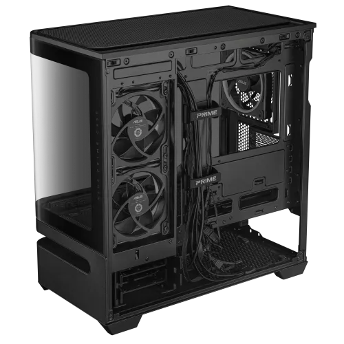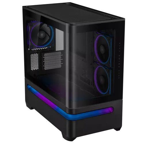 The ASUS Prime AP202 ARGB mATX Mid Tower Gaming Casing can hold GPUs up to 420 mm, so you can easily install high-end graphics cards. The tempered glass panel is curved and goes from the front to the side, so you can see the system from practically any angle without any breaks. The panel is easy to take off and put back on, and it won't fall off, which makes it easy to clean or replace your ASUS Prime AP202 ARGB Mid Tower Casing. ASUS has a proprietary slot vent that helps cool the graphics card better, and it comes with an ARGB light band that works well with Aura Sync. The ASUS Prime AP202 ARGB mATX Gaming Casing can fit Micro ATX and Mini ITX boards, so you can build it in a variety of ways. It has two 2.5 or 3.5 inch combination bays for storage and four expansion slots for extra hardware. You can quickly access USB 3.2 Gen1, USB 3.2 Gen 2x2 Type C, and a combined headphone microphone jack on the front I/O panel. There are a lot of ways to cool it down. The top has room for a 360 mm radiator, three 120 mm or two 140 mm top fans, and a 120 mm ARGB rear fan that is already attached. You also receive two 120 mm ARGB side fans already mounted to help move air even further. The ASUS Prime AP202 ARGB Gaming Casing can hold CPU coolers up to 175 mm and PSUs up to 200 mm. It also has 30 mm of space for wire management to keep the inside neat. The ASUS Prime AP202 ARGB Casing keeps clean and works well since it has dust filters on the top and bottom that can be taken off.