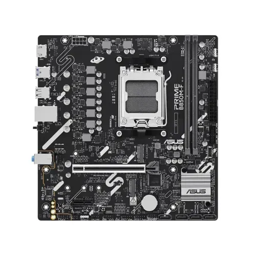 Featuring the AMD AM5 socket, the ASUS PRIME B850M‑F‑CSM supports the latest Ryzen CPUs, ensuring future‑ready computing power. With dual DDR5 DIMM slots, it supports up to 128GB of memory with speeds exceeding 8200+ MT/s (OC). This Asus 850 Motherboard is optimized for multitasking, productivity, and everyday performance, making it ideal for business and home users.