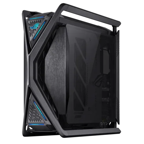 Built from sturdy aluminum alloys, the Asus ROG Hyperion GR701 BTF Edition Casing frame features a unique X that stretches from the middle of the chassis to the outer edges. Its sturdy construction doubles as carry handles that can support hardware weighing up to 80 kg. The Asus ROG Hyperion GR701 BTF Edition Gaming Casing is made of premium materials that undergo additional treatments and unique polishing techniques to provide the opulent appearance and feel that sets a ROG chassis apart from its numerous drawbacks.