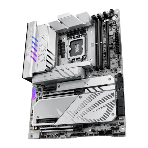 The ASUS ROG MAXIMUS Z890 APEX LGA1851 ATX Motherboard is a flagship ASUS ROG Motherboard designed for extreme overclocking, next-generation gaming, and professional workloads, offering cutting-edge performance with the Intel Z890 chipset and support for Intel Core Ultra Series 2 processors on the LGA1851 socket. This ASUS ROG CROSSHAIR Motherboard delivers record-breaking DDR5 speeds with advanced DIMM Flex, DIMM Fit, and AEMP III technologies, plus bundled cooling solutions for stable memory performance. Expansion is future-ready with dual PCIe 5.0 x16 slots for next-gen GPUs and six M.2 slots including PCIe 5.0 and PCIe 4.0 via ROG DIMM.2 card for ultra-fast storage. Connectivity is unmatched with WiFi 7, Thunderbolt 4, USB 20Gbps Type-C, and 5G LAN, ensuring seamless networking and data transfer. Its robust 22+1+2+2 power stage design guarantees reliable power delivery, while AI Overclocking, AI Cooling II, and AI Networking II provide intelligent system optimization. With DIY-friendly features like Q-Release PCIe slots, BIOS FlashBack, and a pre-mounted I/O shield, the ASUS Z890 APEX Motherboard simplifies building and upgrading. Finished with premium ROG aesthetics and SupremeFX audio, the ASUS ROG MAXIMUS Z890 APEX stands out as the ultimate ASUS 890 Motherboard, combining durability, scalability, and extreme performance for gamers, creators, and overclocking enthusiasts.