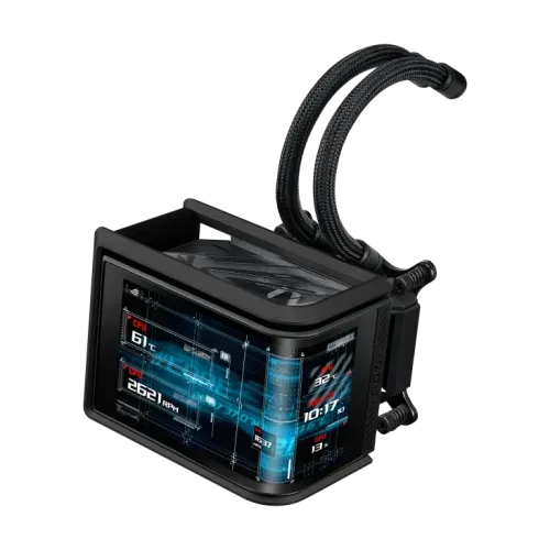 | Others | Motor Speed: 1800 - 3200 +/- 10% RPM Tube: Sleeved FEP tube Tube Length: 200 mm 6.67-Inch Curved 2K AMOLED Display Sliding LCD Panel 3x ROG RYUO IV MF-12C ARGB Fan Daisy-Chained ARGB Fans Pre-Applied Thermal Paste |
