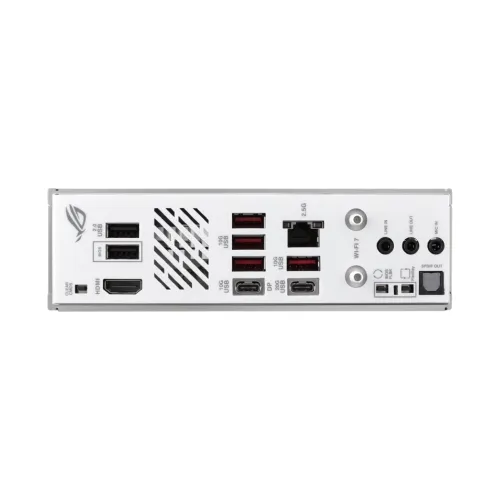 | Internal I/O Ports | Fan and Cooling Related 1 x 4-pin CPU Fan header 1 x 4-pin Extra Flow Fan header 1 x 4-pin AIO Pump header 1 x 4-pin Chassis Fan headers Power Related 1 x 24-pin Main Power connector 1 x 8-pin +12V CPU Power connector Storage Related 2 x M.2 slots (Key M) 2 x SATA 6Gb/s ports USB 1 x USB 10Gbps connector (supports USB Type-C®) 1 x USB 5Gbps header supports 2 additional USB 5Gbps ports 1 x USB 2.0 headers support 4 additional USB 2.0 ports Miscellaneous 2 x Addressable Gen 2 headers 1 x CPU Over voltage jumper 1 x Front Panel Audio header (F_AUDIO) 1 x 10-1 pin Front System Panel header 1 x Thermal Sensor header Back Panel I/O Ports 1 x USB 20Gbps port(s) 5 x USB 10Gbps port(s) (4 x Type-A + 1 x USB Type-C® with DP Alt mode) 2 x USB 2.0 port(s) (2 x Type-A) 1 x HDMI™ port 1 x Wi-Fi module 1 x Intel® 2.5Gb Ethernet port 3 x Audio jacks 1 x Optical S/PDIF out port 1 x BIOS FlashBack™ button 1 x Clear CMOS button 1 x FlexKey button |