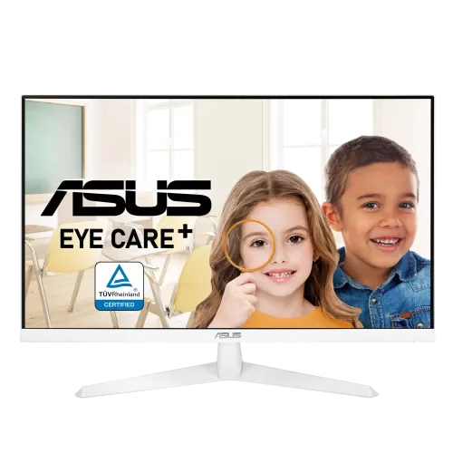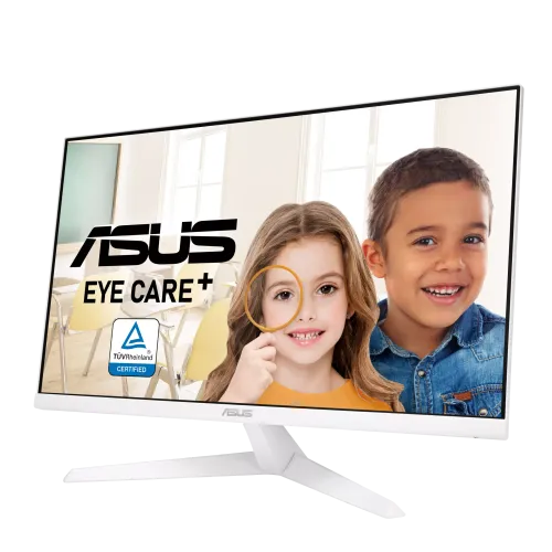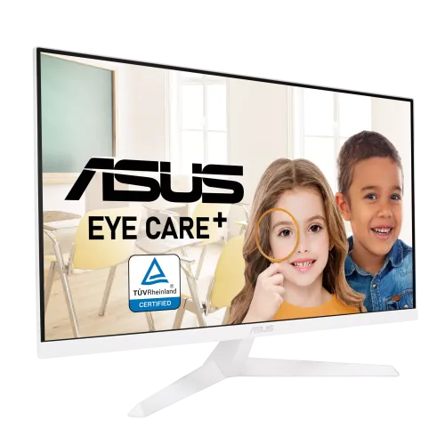 The ASUS VY279HE-W Monitor has a 27-inch Full HD 1920 x 1080 IPS panel with a 16:9 aspect ratio and a broad 178° viewing angle, delivering consistent colors and crisp pictures across a 597.88 x 336.31 mm display area. The ASUS VY279HE-W Monitor features a 75Hz refresh rate, 1ms MPRT response time, and AMD FreeSync technology with Adaptive-Sync VRR support, ensuring smooth video playback and casual gaming without tearing or stuttering. The anti-glare LED-backlit screen has a brightness of 250 cd/㎡, a 1000:1 contrast ratio, 16.7 million display colors, and a pixel pitch of 0.311mm for balanced visual quality. ASUS Eye Care Monitor technology includes TÜV Rheinland-certified Flicker-Free and adjustable Blue Light Filter features to reduce eye strain, while Eye Care+ adds Color Augmentation mode for users with color vision deficiency and a Rest Reminder function to promote healthy screen habits. The ASUS Monitor also has a special long-lasting antibacterial treatment on the bezels and hotkeys to assist prevent the growth of bacteria and fungi. Connectivity options include HDMI 1.4 and VGA ports with HDCP support, covering digital signal frequencies of 24–83KHz (H) and 48–75Hz (V), and analog frequencies of 24–83KHz (H) and 48–60Hz. Additional features including Trace Free Technology, SPLENDID, GamePlus, QuickFit, and QuickFit Plus improve usage. The ASUS VY279HE-W 27" 75Hz FHD IPS Eye Care Monitor has tilt adjustments ranging from +23° to -5°, VESA 100x100mm wall mounting, and a Kensington lock for security. With a power usage of 17.8W and certifications such as TÜV Flicker-free, TÜV Low Blue Light, and AMD FreeSync, the ASUS VY279HE-W 27" 75Hz FHD IPS Eye Care Monitor distinguishes out as a dependable and health-focused display choice.