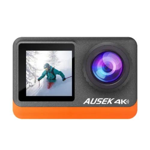 The Ausek AT-M80TR 4K WiFi Waterproof Action Camera is designed to capture high-quality visuals with advanced features that enhance recording and usability. It supports 4K Ultra HD video resolution at 60fps with a maximum recording capability of 4608*2592, ensuring crisp and detailed footage. The Ausek AT-M80TR camera also delivers high-resolution still images, making it suitable for both video and photography. Electronic Image Stabilization (EIS) is available across multiple resolutions, including 4K60/30fps, 2.7K 60/30fps, 1080P 60/30fps, and 720P 120/60/30fps. Which helps reduce motion blur and maintain smooth output. The rear display is a 2.2-inch HD touchscreen that allows easy navigation and control, while the built-in front screen supports selfies and vlogging. Ausek AT-M80TR 4K Camera comes with a wireless microphone option, enhancing audio quality during recording. The Ausek AT-M80TR Action camera uses a rechargeable lithium battery, providing reliable power for extended use. Memory expansion is possible through Micro SD cards up to 128GB, offering ample storage for long sessions. Connectivity is supported by built-in WiFi, compatible with Android and iOS apps, enabling quick sharing and remote control. A waterproof case is included, allowing safe use in underwater environments. Multiple shooting modes are available, including video mode, photo mode, car mode, and security mode, giving flexibility for different scenarios. Data transfer is supported via USB cable, ensuring simple and efficient file management. With its combination of 4K recording, dual displays, EIS support, wireless mic, waterproof case, and many shooting modes, the Ausek AT-M80TR provides a complete solution for capturing action, travel, and daily moments in high quality