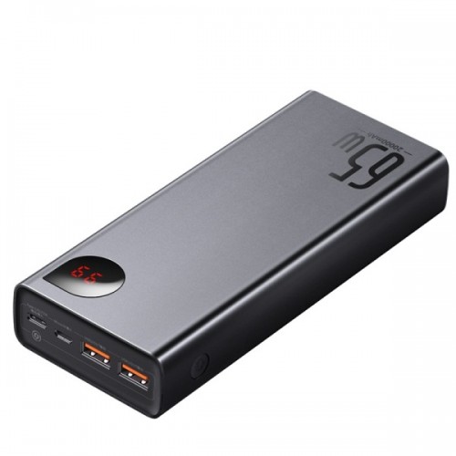 The Baseus PPADM65-S 20000mAh 65W Adaman Digital Display Quick Charging Power Bank is a premium, high-capacity portable charger engineered for fast, efficient, and versatile device charging—ideal for professionals, travelers, and tech enthusiasts. Crafted with a sleek metal casing for enhanced durability and heat dissipation, the Baseus Adaman 65W Power Bank combines charging technology with user-friendly design. Its massive 20,000mAh polymer lithium battery ensures multiple full charges for smartphones, tablets, laptops, and other USB-C devices, making it a reliable companion for long trips or busy workdays. The standout feature is its 65W super-fast charging capability, which supports Power Delivery (PD) and Quick Charge 3.0 protocols, allowing you to charge a MacBook Pro or similar laptop in under two hours. Equipped with three output ports two USB-A and one USB-C it enables simultaneous charging of up to three devices, optimizing power distribution without compromising speed.The digital LED display offers real-time insights into remaining battery percentage and charging status, eliminating guesswork and enhancing user control. Input options include Micro USB and USB-C, with the latter supporting up to 60W recharge speed, allowing the power bank itself to be fully recharged in just 2 hours with a compatible charger. Safety features like overcharge protection, temperature control, and short-circuit prevention ensure secure charging across all connected devices. With an energy conversion rate of 75%, this power bank maximizes efficiency while minimizing energy loss.Whether you're powering up a gaming console, DSLR camera, or smartphone, the Baseus PPADM65-S offers universal compatibility, robust performance, and elegant design