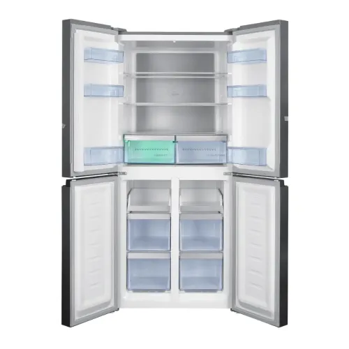 The Beko BOREF-B3RGNS46HXPI 466 Liters 4-door Inverter Refrigerator is a smart appliance designed to elevate your kitchen experience with its spacious 466-liter capacity and advanced cooling technology. This Beko Refrigerator offers a total net capacity of 446 liters, with a 291-liter fridge compartment and a 175-liter 4-star freezer, making it ideal for large families. The innovative multiflow cooling system and fan ventilation ensure consistent temperature distribution, keeping your food fresh for longer. Inside the Beko BOREF-B3RGNS46HXPI Refrigerator, you'll find two crisper drawers for fresh produce, two height-adjustable glass shelves, and six durable plastic door racks, providing versatile storage options. The freezer section is thoughtfully designed with four drawers, two freezer flaps, and a convenient twist ice box for easy ice-making. Energy-efficient LED lighting illuminates the interior, enhancing visibility. Built for durability, the Beko BOREF-B3RGNS46HXPI 466 466-liter refrigerator features safety glass shelves, a metal back wall, and a high-quality white HIPS inner body. The sleek exterior showcases grey steel side panels, a VCM door panel, and recessed ABS handles for a modern finish. Designed to operate efficiently even in tropical climates, the Beko BOREF-B3RGNS46HXPI Inverter Refrigerator is powered by a VMH1113Y inverter compressor from China, using eco-friendly R600a refrigerant. It runs quietly at 42dB and offers reliable performance with a power rating of 180W and defrost power of 220W. Measuring 795x740x1800 mm and weighing 87 kg, this freestanding Beko BOREF-B3RGNS46HXPI 466 Liter fridge is easy to install with its two sturdy wheels and adjustable feet. Whether you’re upgrading your kitchen or looking for a reliable cooling solution, the Beko BOREF-B3RGNS46HXPI 4-Door Inverter Refrigerator delivers exceptional performance, storage flexibility, and sleek design, making it a perfect addition to any home.