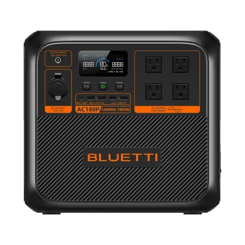 closeThe BLUETTI Premium 150 (AC180P) Portable Power Station is a high-performance, expandable, and eco-friendly energy solution ideal for off-grid living, outdoor adventures, and emergency backup. With 1,440Wh capacity and 1,800W output (peaking at 2,700W), it delivers reliable power for virtually any device. The BLUETTI AC180P Portable Power Station stands out as a premium-grade power solution engineered for versatility, speed, and durability. Featuring a robust 1,440Wh LiFePO₄ battery with over 3,500+ life cycles, it ensures long-term reliability and safety. Its 1,800W continuous output and 2,700W Power Lifting Mode allow it to run high-demand appliances like refrigerators, power tools, and electric grills with ease. The unit supports expandable capacity up to 2,246Wh when paired with the B80P module, making it perfect for extended use during camping, RV trips, or power outages. Designed for convenience, the BLUETTI Premium 150 offers 11 output ports, including 2 AC outlets, 4 USB-A ports, 1 USB-C (100W), 1 car port, and a 15W wireless charging pad, ensuring compatibility with a wide range of devices—from smartphones and laptops to medical equipment and kitchen appliances. Its bidirectional inverter, MPPT controller, and UPS functionality provide seamless energy management, while the BLUETTI app enables smart control and real-time monitoring from your phone. Charging is ultra-fast and flexible: AC charging reaches 80% in just 45 minutes with 1,440W Turbo Mode, while solar input supports up to 500W, completing a full charge in 3.3 hours. Car charging takes 7.2 hours, and generator input matches AC speed at 1.5 hours, giving users multiple options for recharging on the go. The BLUETTI Premium 150 compact design and lightweight build make it easy to transport, whether you're heading into the wild or preparing for a blackout.
