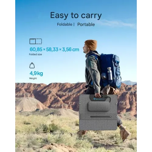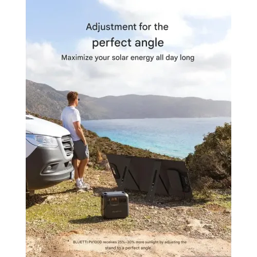 The BLUETTI PV100 100W Solar Panel is a premium-grade, portable solar solution engineered for outdoor enthusiasts, emergency preparedness, and sustainable energy seekers. Crafted with high-efficiency monocrystalline solar cells, it boasts a remarkable conversion rate of up to 23.4%, ensuring optimal power generation even under cloudy skies or partial sunlight. Its rugged ETFE coating enhances durability and scratch resistance while improving light transmittance, making it ideal for long-term outdoor use. Weighing just 9.48 lbs and featuring a foldable design with an integrated kickstand, the BLUETTI PV100 offers effortless setup and compact storage, perfect for camping, RV travel, and off-grid adventures. The panel is IP65 water-resistant, shielding it from rain and dust, and includes MC4 connectors for broad compatibility with most solar generators, including BLUETTI’s EB3A, EB55, and AC200P models. With its plug-and-play functionality, the BLUETTI PV100 empowers users to harness clean, renewable energy wherever they go, making it a top choice for those searching for reliable 100W solar panels, portable solar charging solutions, or eco-friendly backup power systems.