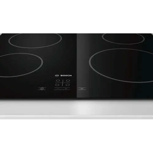 This Bosch electric hob includes 4 HighSpeed radiant cooking zones, allowing you to cook multiple dishes at once with consistent heat distribution. The Direct Select control panel lets you choose power levels instantly with a single touch, eliminating the need for repeated tapping.
