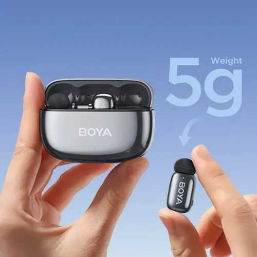 The BOYA mini 2-02 Wireless Microphone is equipped with a lightweight 5 g transmitter. Produces clear and detailed sound via a high-quality condenser mic with a frequency response ranging from 20 Hz to 20 kHz. With a 48 kHz / 24-bit sample rate, an 80 dB signal-to-noise ratio, and compatibility for up to 120 dB SPL, the BOYA mini 2-02 Microphone accurately records authentic voice tones even in dynamic recording conditions. One of the most notable characteristics of the BOYA mini 2-02 Wireless Microphone System is its real AI noise cancellation, which has strong and light modes to effectively eliminate background noise while keeping vocal quality. The system enables mono, stereo, and safety track output modes, offering producers greater flexibility and security while recording. The BOYA Microphone, with its steady wireless transmission range of up to 100 meters, allows for freedom of movement during interviews and on-the-go shooting. Battery performance is consistent, with each microphone providing up to 6 hours of use, while the BOYA mini 2-02 Wireless Microphone's supplied charging case extends total operating duration to an amazing 30 hours and fully recharges in around 2 hours via 5V2A input. The Type-C receiver allows for playback without unplugging, has gain control, and draws power straight from the connected mobile device, making the BOYA mini 2-02 Wireless Microphone convenient to use without the need for additional batteries. Monitoring support, a strong, non-removable metal clip, and aerospace-grade vacuum coating improve usage and longevity.