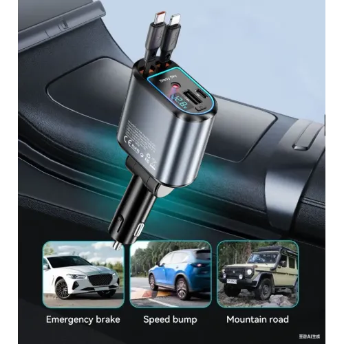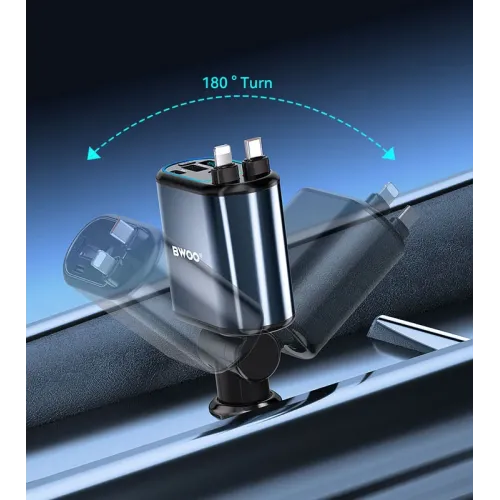 The BWOO BO-CC109 120W 4 in 1 Starry Light Car Charger is the ultimate in-car charging solution for the modern, multi-device driver. Engineered for speed and organization, this powerful accessory features a 120W total output to simultaneously fast-charge up to four devices, supporting protocols like PD and QC3.0 for optimized performance across smartphones (including iPhone and Android), tablets, and even some laptops. The core of its appeal lies in the dual retractable cables (often one Type-C and one Lightning/iOS), which extend up to 80cm and automatically retract, eliminating cable clutter and keeping your car interior neat. Beyond its robust charging capabilities, the BWOO BO-CC109 elevates your driving ambiance with its built-in "Starry Light" LED feature, emitting a romantic halo and improving night-time visibility for the ports. For enhanced usability, the charger often incorporates a 180-degree rotation design for flexible placement and a smart voltage monitor for device safety, protecting against overcharge, overcurrent, and short circuits. This versatile, high-tech car charger is universally compatible with mainstream 12V-24V vehicles, making it a must-have upgrade for anyone seeking fast, safe, and tangle-free charging on the go.