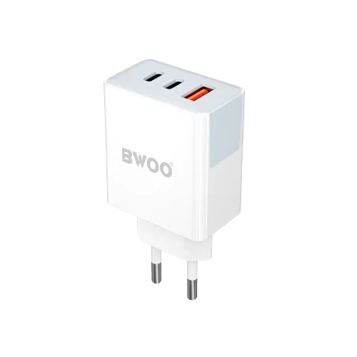 The BWOO BO-CDA133 is a versatile 3-in-1 fast wall charger offering 40W of total output through dual USB-C and single USB-A ports, making it ideal for powering multiple devices simultaneously with speed and safety. Designed for modern tech users who juggle smartphones, tablets, earbuds, and more. The BWOO Fast Wall Charger delivers exceptional charging performance in a compact, travel-friendly form. Featuring three output ports, two USB-C and one USB-A, this charger supports Power Delivery (PD) up to 20W and Quick Charge (QC) up to 18W, enabling rapid charging for devices like iPhones, Android phones, and other USB-powered gadgets. Its PD+QC smart chip ensures optimized power distribution, low temperature operation, and reduced energy consumption, enhancing both safety and efficiency. Crafted with PC flame-retardant materials, the BWOO BO-CDA133 offers comprehensive protection against overcurrent, overvoltage, overheating, and short circuits, making it a reliable companion for home, office, or travel use. The charger supports 100-240V universal voltage, allowing seamless use across different countries without the need for a voltage converter. Whether you're charging a phone, tablet, or power bank. Its sleek white design complements any environment, while the lightweight build makes it easy to carry in a bag or pocket. Ideal for business travelers, students, and tech enthusiasts. For those seeking fast, safe, and multi-device charging, this wall adapter stands out as a top-tier choice.