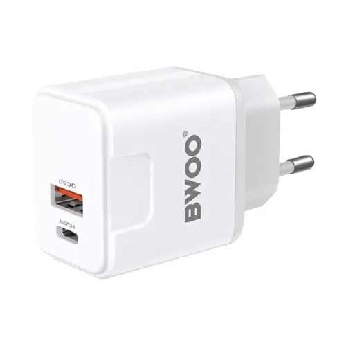 The BWOO BO-CDA157C-C Charger Adapter is a powerful and compact charging solution designed to efficiently power multiple devices at once. Featuring dual interfaces, USB-A and USB-C, the BWOO BO-CDA157C-C 20W Charger Adapter delivers a total output power of 20W, providing fast and reliable charging for smartphones, tablets, and other USB-compatible devices. It supports a wide input range of 100-240V, 50/60Hz, 0.5A MAX, making the BWOO BO-CDA157C-C Adapter ideal for use at home, in the office, or while traveling. The USB-C port offers fast charging at 5V–3.0A, 9V–2.22A, and 12V–1.67A, while the USB-A port delivers 5V–3.0A, 9V–2.0A, and 12V–1.5A. When both ports are used simultaneously, the combined output reaches 5V–3.0A, ensuring safe and efficient power distribution. This BWOO BO-CDA157C-C comes with a Type-C to Type-C cable and is crafted from durable PC+ABS materials in a sleek white finish, making it a reliable, stylish, and versatile choice for all your charging needs.