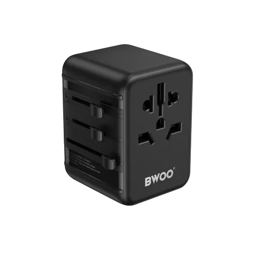 The BWOO BO-UC08 20W Universal Travel Adapter is a powerful and compact charging option for global travelers. This versatile gadget, also known as the BWOO BO-UC08 20W Universal Travel Charger, has a USB-C connector and two USB-A ports for a total output power of 20W. The USB-C output offers rapid charging with numerous voltage options—5V⎓3A, 9V⎓2.22A, and 12V⎓1.67A (PD20W), while the USB-A ports give 5V⎓3A, 9V⎓2A, and 12V⎓1.5A (QC18W) to ensure compatibility with a broad variety of devices. The BWOO BO-UC08 Universal Charger Adapter is made of robust PC and copper components and weighs only 126g. It measures 54x53x69mm and is ideal for travel. This product is CE, FCC, and RoHS certified, assuring safety and dependability. It has a rating of 100V-250V~10A and maximum power outputs of 250V~10A/2000W and 110V~10A/880W. With a sleek black design and international plug adaptability for US, AUS, UK, and EU standards, the BWOO BO-UC08 Travel Charger Adapter is a must-have for anybody looking for quick, dependable, and adaptable charging on the road.
