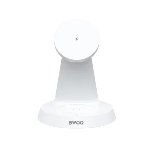 The BWOO BO-WL23 15W is a 3 in 1 Wireless Charging Station. This sleek, efficient magnetic wireless charger is the ultimate multi-device charging solution, featuring three dedicated interfaces to simultaneously power your iPhone, Apple Watch, and wireless earbuds in one organized setup. Boasting Qi-certified 15W fast wireless charging, the station intelligently delivers optimal power with multiple outputs (15W, 10W, 7.5W, 5W, 3W) for safe and effective power delivery across all your devices. The upgraded magnetic rings ensure powerful magnetic compatibility and secure alignment for your iPhone, guaranteeing a reliable, seamless charging experience even with a protective case. BWOO BO-WL23 prioritizes safety with an advanced charging protection mechanism built in, safeguarding against overheating, overcharging, and short circuits. Invest in this durable, high-quality 3-in-1 charging stand for a clean, reliable, and high-speed wireless charging experience on any desk or bedside table.