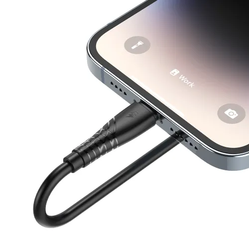The BWOO BO-X318L USB-A to Lightning Cable is a premium solution for Apple devices, delivering both fast charging and reliable data transfer. This BWOO BO-X318L 15W 1M Lightning Cable supports a data transfer rate of 480 Mbps, allowing seamless syncing of files between your devices. Made from high-quality TPE and aluminum alloy, the cable offers durability and flexibility, while its 1-meter length ensures convenience for everyday use. The robust conductor construction **(55/0.08TC+250D)2C+(11/0.08TC+200D)2C maintains stable power delivery and signal integrity, and the 3.8mm wire outer diameter provides strength without sacrificing manageability. Supporting 5V-3A (15W) fast charging, the BWOO BO-X318L Cable quickly powers compatible Apple devices. With the model BO-X318L (MPN: 6933654815611), this cable combines durability, performance, and practicality, making it the perfect choice for users seeking a reliable USB-A to Lightning charging and data cable.