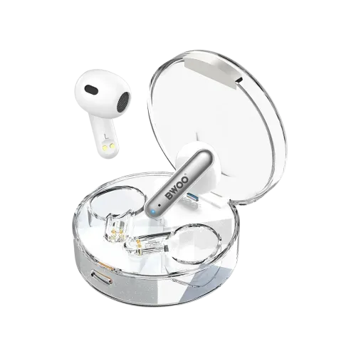 The BWOO BW95 Earbuds provide the ideal blend of design, performance, and comfort, making them one of the finest options for everyday listening. The BWOO BW95 Bluetooth Earbuds, powered by a 13mm HD dynamic driver, provide crystal-clear sound with deep bass and accurate treble thanks to superior acoustic tuning. With powerful Bluetooth 5.2 connection and support for HFP, A2DP, and AVRCP protocols, the BWOO BW95 TWS provides a robust and low-latency wireless experience within a 10-meter range, making it great for gaming, music, and phone conversations. These earbuds include a transparent design, a comfortable fit, and voice assistant functionality for hands-free control. The BWOO BW95 comes with a 300mAh charging case and 30mAh earbud batteries, which provide up to 4 hours of gameplay or conversation time and an astonishing 200 hours of standby life. The BWOO BW95 Earbuds blend beauty and functionality, with Type-C quick charging (1.5 hours to full charge), a lightweight 48g design, and a tiny 58x58x24mm form factor. Whether for business, travel, or leisure, the BWOO BW95 Bluetooth Earbuds provide a standout listening experience.