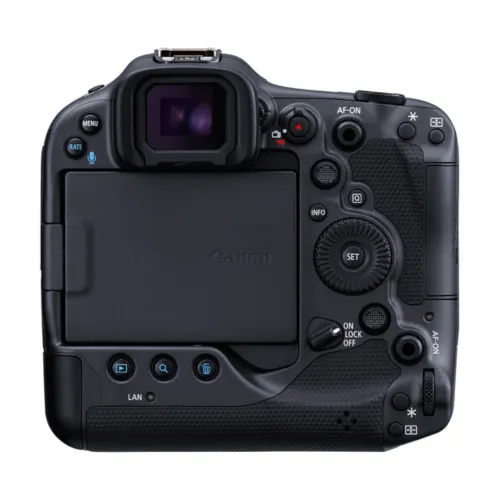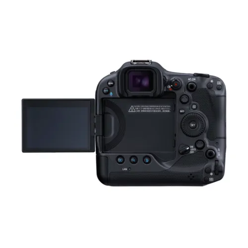 The Canon EOS R3 Mirrorless Camera offers a 5.76M-dot OLED EVF for clear, blackout-free viewing with 0.76x magnification and a 120 fps refresh rate, displaying extensive shooting info that rotates with the camera. Its 3.2" vari-angle touchscreen LCD provides flexible high, low, or front-facing angles with 4.15M-dot resolution for vivid live-view and easy touchscreen control.