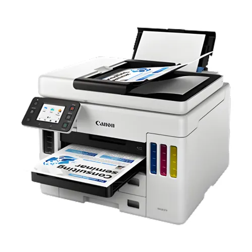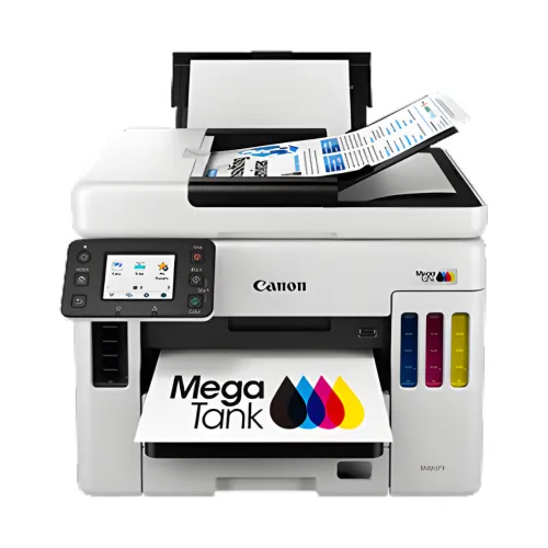 The Canon MAXIFY GX7070 Printer is a professional Canon Ink Tank Printer designed for businesses that require high-volume, low-cost printing with superior efficiency. As a Canon All in One Printer, it combines printing, copying, scanning, and faxing in one compact device. Powered by Canon’s MegaTank refillable ink system, it delivers exceptional yields, duplex functionality, and versatile connectivity, making it the ideal choice for modern offices.