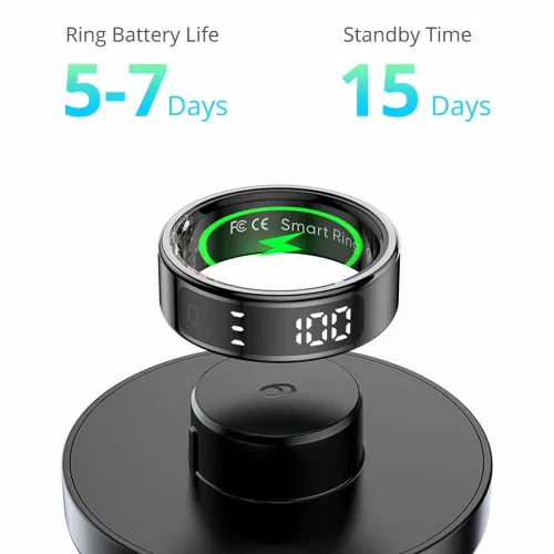 The Colmi R12 Smart Ring is a sleek and innovative Colmi Smart Ring that blends advanced health tracking with a stylish, minimal design, making it a perfect accessory for fitness enthusiasts, wellness-focused users, and tech-savvy individuals. With its vibrant touch-sensitive display, the Colmi R12 Smart Ring allows users to conveniently monitor real-time health stats such as heart rate, blood oxygen levels (SpO₂), sleep quality, step count, and battery status directly from their finger, eliminating the constant need to check a smartphone or smartwatch. It also features gesture control, enabling intuitive interactions like music playback or camera control with simple hand movements. Designed for active lifestyles, it supports multiple sports modes including walking, running, cycling, and swimming, providing in-depth data on distance, calories burned, steps taken, and workout time. Built for durability, the Colmi Smart Ring boasts a 5ATM and IP68 waterproof rating, making it ideal for swimming and other water-based activities. Its compact body houses a lithium polymer battery, 15 mAh for ring sizes 7 to 9 and 18 mAh for sizes 10 to 13, offering impressive battery life with convenient wireless charging. Compatible with Android 5.1 and iOS 8.0 or above, the ring syncs effortlessly with the QRing app to deliver detailed health insights and activity tracking. Available in elegant black, gold, and silver finishes and a variety of sizes from 7 to 13, the Colmi R12 Smart Ring offers a fashionable and functional solution for those seeking a compact, high-tech health companion that fits right on their finger.