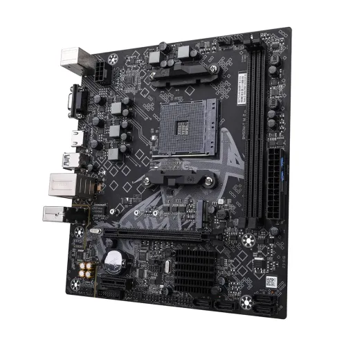 The Colorful BATTLE-AX B450M-T M.2 V14 AM4 Motherboard is based on the AMD B450 chipset. It supports Ryzen series CPUs via the AM4 socket, making it an excellent choice for gaming, productivity, and everyday computing. This Colorful BATTLE-AX B450M-T M.2 V14 mATX motherboard features two DDR4 memory slots that support up to 64GB of memory and speeds ranging from 2133 MHz to an impressive 3600 MHz (OC). It also supports XMP profiles and dual-channel memory technologies, allowing customers more flexibility and performance control. The colorful BATTLE-AX B450M-T M.2 V14 Motherboard has one M.2 slot for PCIe 3.0 x4 NVMe SSDs and four SATA 6Gb/s ports, providing many fast storage options for current configurations. This Colorful Motherboard's rear I/O layout is designed for convenience, with four USB 2.0 ports, two USB 3.2 Gen 1 Type-A ports, HDMI 2.0 with up to 4K 60Hz output, VGA, a Gigabit Ethernet port, PS/2 support, and three audio jacks powered by the Realtek ALC897 codec with 5.1-channel audio. Users will find many extension and connectivity options inside, as well as a colorful BATTLE-AX B450M-T M.2 V14 Motherboard with CPU and system fan pins, USB headers, a COM port pin, front panel audio, debug lights, and a clear CMOS jumper. The motherboard also has a PCIe 3.0 x16 slot for graphics cards and a PCIe 3.0 x1 slot for extra devices. The Colorful BATTLE-AX B450M-T M.2 V14 AM4 mATX Motherboard, with its 128M UEFI BIOS that supports different languages, provides easy tuning and dependable power management. Its features, including wake-on-LAN, USB wake-up, and system monitoring, make it a reliable choice for both home and office builds. This Colorful Motherboard's mATX design, which measures 220mm x 195mm, makes it ideal for tiny yet powerful computers.