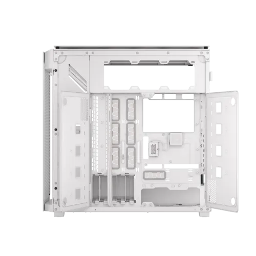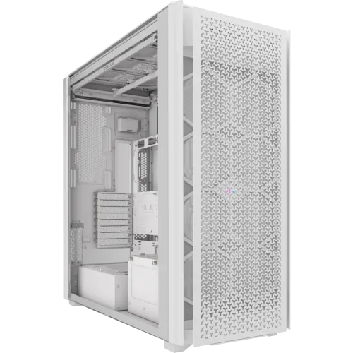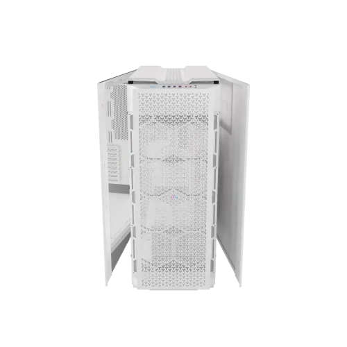 The Corsair 9000D RGB AIRFLOW Super Full-Tower Casing White is a high-end solution for experienced PC builders. With unequaled cooling capacity, structural robustness, and broad hardware support, all housed in a premium Corsair case. When enthusiasts look inside the Corsair 9000D RGB AIRFLOW Super Casing White, they immediately note its ability to support up to 18 120mm fans and massive 480mm radiators on both the top and front, making it one of the most cooling-focused designs in the Corsair Full-Tower Casing category. The InfiniRail fan mounting mechanism with integrated iCUE LINK mechanism Hub simplify installation while offering unrivaled flexibility for complicated airflow configurations. The Corsair 9000D RGB AIRFLOW Super Full-Tower Casing White supports Mini-ITX, Micro-ATX, ATX, E-ATX, and SSI-EEB motherboards, as well as reverse connector platforms like ASUS BTF, MSI Project Zero, and Gigabyte Project Stealth. The Corsair 9000D RGB AIRFLOW Super Full-Tower Casing White is both durable and convenient, featuring steel and tempered glass construction, a large tempered glass side window, and QuikTurn screws for quick access. Storage options include support for up to six 2.5-inch SSDs and five 3.5-inch HDDs for maximum expansion. The GPU clearance is exceptional, reaching 580mm thanks to an integrated anti-sag mechanism, while CPU coolers up to 180mm and ATX power supplies up to 225mm fit perfectly. The Corsair 9000D RGB AIRFLOW Super Casing White also includes a generous 76mm cable routing area for clean, efficient builds. Front I/O connectivity includes two USB 3.2 Gen 2 Type-C ports, four USB 3.2 Gen 1 Type-A ports, and audio in/out, ensuring modern and adaptable access. The Corsair 9000D RGB AIRFLOW Super Full-Tower Casing White offers a potent combination of airflow, capacity, and superior engineering for those creating high-end gaming systems, professional workstations, or ultimate liquid-cooled rigs. Radiator compatibility varies from 120mm to 480mm across numerous mounting zones, with support for both horizontal and vertical GPU installation.