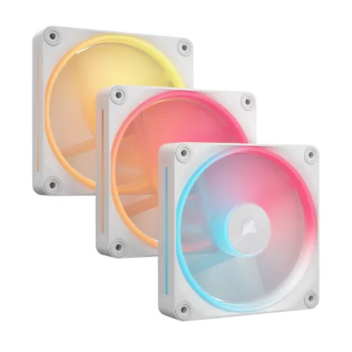 The Corsair iCUE LINK LX120-R RGB 120mm Fan (3 pack) is engineered for PC builders who demand high-performance cooling and striking RGB aesthetics. Each Corsair iCUE LINK LX120-R RGB 120mm PWM Reverse Fan delivers an adjustable speed range of 400 – 2400 RPM, producing airflow of 11.5 – 66.7 CFM and static pressure up to 4.72 mm-H2O, making it perfect for radiators, liquid cooling setups, and advanced airflow configurations. These Corsair iCUE LINK LX120-R RGB Casing Fans are built with magnetic dome bearings for long-lasting durability and smooth operation while keeping noise levels as low as 10 dBA, even under heavy loads, reaching just 37.7 dBA at maximum performance. With a stylish white 120mm x 25mm design, each Corsair iCUE LINK LX120-R RGB Fan features 18 individually addressable RGB LEDs with dual light loops, offering vibrant and customizable lighting effects through the iCUE LINK System, which also ensures simple daisy-chain installation and clutter-free cable management. Enhanced with CORSAIR AirGuide technology, airflow is directed precisely where it’s needed, boosting system cooling efficiency. Lightweight at 0.76 kg and requiring only 0.40A power draw, this 3-pack offers a premium balance of aesthetics, quiet operation, and superior cooling—making it a must-have upgrade for gamers, content creators, and PC enthusiasts who want both performance and style.