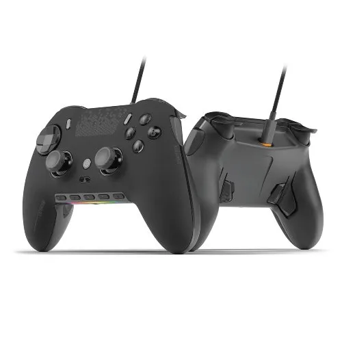 The Corsair SCUF ENVISION Gamepad is a high-performance wired gaming controller designed to give competitive PC gamers the ultimate edge. With wired connectivity for ultra-low latency and precision input, the Corsair SCUF ENVISION Gaming Controller delivers unmatched control and customizability. It features four rear remappable paddles that let players keep their thumbs on the sticks for faster reactions—ideal for quick movements like jumping, reloading, or sliding. These paddles can be assigned virtually any controller function to fit your gameplay style. The Corsair SCUF ENVISION also includes five fully programmable G-Keys, seamlessly integrated with Corsair’s iCUE software, enabling easy setup of macros or system functions. Additionally, the controller boasts two side-mounted SAX buttons, perfectly positioned for natural finger placement, offering even more input options—and they’re easily removable for those who prefer a streamlined grip. Further customization comes with interchangeable thumbsticks, allowing players to switch between short concave sticks for quick control and tall domed sticks for greater precision. For a crisp tactile feel, the Corsair SCUF ENVISION Gamepad is equipped with OMRON mechanical switches on the ABXY buttons and D-Pad, delivering fast mouse-like clicks for rapid response. Visually, the controller stands out with a customizable RGB light strip, which can be synchronized using iCUE to match your complete gaming setup. The Corsair SCUF ENVISION Gaming Controller is more than just a controller; it's a competitive tool designed for top performance, with sophisticated features such as saveable control profiles, fine-tuned thumbstick sensitivity, and customizable trigger curves. The Corsair SCUF ENVISION makes sure you maintain control whether you're playing for fun or competing professionally.