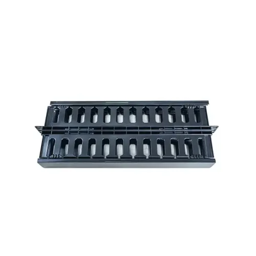 The COTE CWM-1UFRP 1U Cable Manager is a dependable and effective solution for cable management in server racks and networking configurations. This COTE CWM-1UFRP 1U Cable Manager is a plastic double-sided horizontal design that allows for easy routing and separation of cables on both sides, reducing clutter and improving ventilation. The COTE CWM-1UFRP 1U is made of sturdy plastic with a sleek black finish and steel components for increased strength, ensuring long-term performance. It is simple to install with cage nuts and screws and is designed to attach to vertically anchored rails, making it perfect for structured cable layouts in conventional 19-inch racks. The COTE CWM-1UFRP 1U Cable Manager is an excellent addition to any data center or networking infrastructure, combining functionality with a clean, professional appearance.