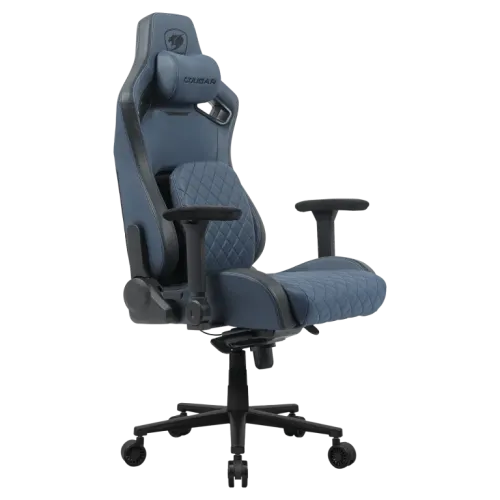 The Cougar DEFENSOR S Navy Blue F Gaming Chair is a high-performance ergonomic seat crafted for gamers who value precision, comfort, and sleek design. Featuring signature PushBack advanced lumbar support system, it promotes healthy spinal alignment by preserving the natural curve of your lower back — helping you stay focused and fatigue-free during long gaming sessions. The magnetic memory foam neck pillow and high-density molding foam conform to your body’s shape, delivering personalized support where you need it most. With 4D folding armrests — inspired by the COUGAR x VCT 2024 esports chair — you can switch between full arm support and unrestricted movement. Upholstered in breathable, leather-like fabric, the Cougar DEFENSOR S Navy Blue F offers a smooth, durable finish that feels organic to the touch. Its deeper, wider seat improves weight distribution and sitting stability, while the TÜV-certified Class 4 gas lift, steel alloy 5-star base, and extra-large wheels ensure reliable adjustability and mobility. With a reclining range of 90º to 155º, tilt tension control, and a handy backrest pocket, the Cougar DEFENSOR S Navy Blue F isn’t just a gaming chair — it’s your ergonomic command center for immersive gameplay and peak performance.