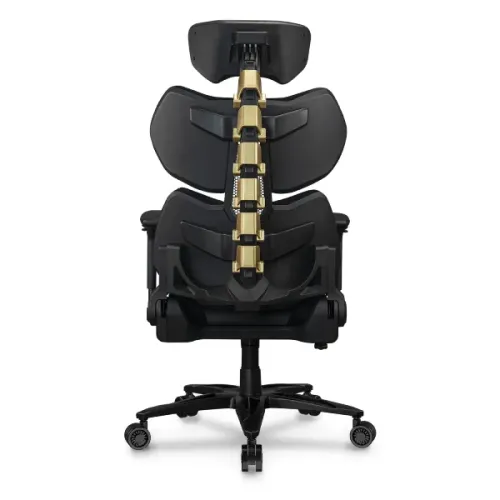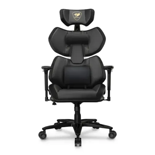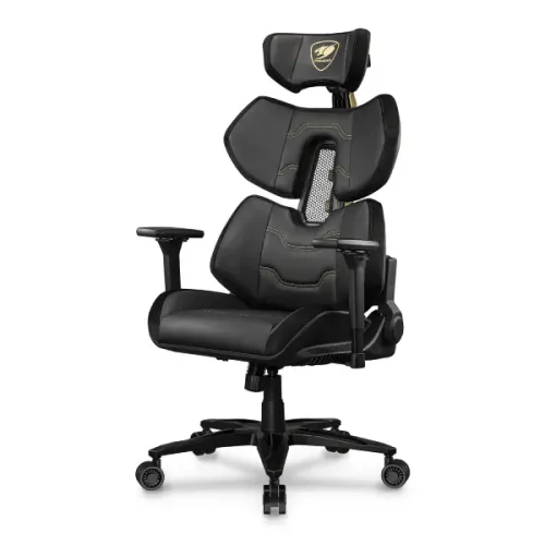 The Cougar Terminator Elite Gaming Chair is an ideal choice for gamers who value both style and ergonomic comfort. This Cougar Gaming Chair is an impressive update to the original Terminator, with a striking metallic Gold finish on its unique "Second Spine" structure, which naturally aligns with your back for ideal posture during long gaming sessions. The chair is upholstered in Hyper-Dura leatherette, which is 12 times more durable than ordinary coverings, as well as exquisite velvet for extra comfort and elegance. Its excellent lumbar support mechanics alleviate lower back tension and fatigue, allowing you to perform at a high level for long periods. The breathable mesh material effectively distributes body heat, allowing you to stay cool and fresh even during energetic gameplay.Customization options include fully adjustable height, headrest tilt, and recline angle, as well as 4D armrests with independent height, width, depth, and swivel adjustments. The Cougar Terminator Elite Gaming Chair's extra-large 29.6-inch aluminum wheelbase and 3-inch casters provide stability and durability, making it a dependable and stylish addition to any gaming setup.