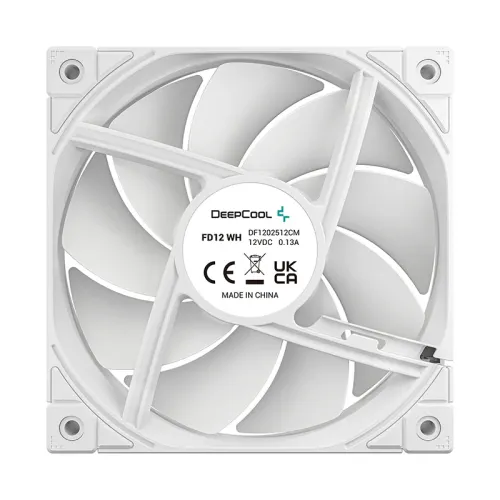 The DeepCool FD12 WH 120mm Case Fan is a premium cooling solution that provides great airflow and silent operation for gaming PCs, workstations, and custom builds. The DeepCool FD12 WH 120mm Casing Fan has a speed range of 400 to 2050 RPM ±10%, allowing customers to balance quiet operation and optimal cooling effectiveness. With an impressive airflow of 64.2 CFM and static air pressure of 2.49 mmAq, the DeepCool FD12 WH Casing Cooler ensures effective heat dissipation across radiators, heatsinks, and dense case interiors. Its hydro bearing technology not only reduces noise levels to ≤27.6 dB(A) but also enhances durability for long-lasting performance. Equipped with a 4-pin PWM connector, this fan provides precise speed control through compatible motherboards or fan controllers. Operating at a standard 12 VDC with a low power consumption of 1.56W and input current of 0.13A, the fan is energy-efficient without compromising performance. The sleek White 120×120×25 mm design, weighing 175g, fits most PC cases and complements modern builds aesthetically. Combining high airflow, quiet operation, and reliable hydro bearing performance, the DeepCool FD12 WH 120mm Case Fan is an ideal choice for PC enthusiasts seeking both efficiency and style in cooling solutions.