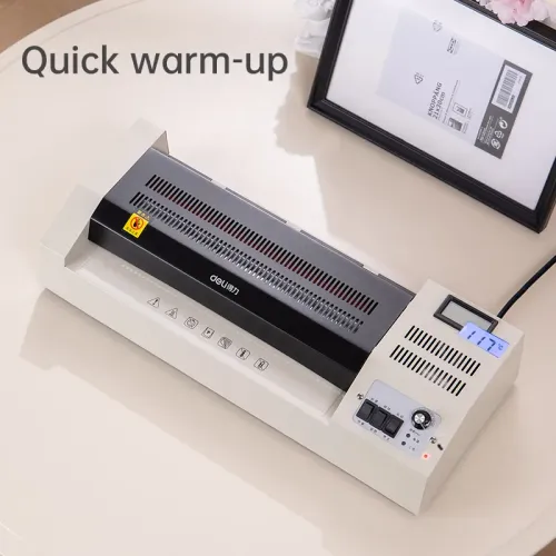 The Deli E3895-EU A3 Laminating Machine is a dual-function laminator designed to handle both heat and cold lamination with precision and speed. Supporting documents up to A3 size, it accommodates laminating pouches from 50 to 200 microns, making it ideal for a wide range of materials—from delicate certificates to thicker signage or ID cards. With a swift 600mm/min laminating speed, this Deli E3895-EU ensures efficient output, cutting down processing time in fast-paced offices, schools, or creative studios. The Deli E3895-EU Laminating Machine boasts a continuous 8-hour runtime, allowing professionals to tackle high-volume tasks without interruption. Despite its power, it maintains a surprisingly low 50 dB noise level, ensuring a quiet work environment. It's 410W rated power delivers consistent performance while optimizing energy consumption, making it both powerful and practical. Whether you're protecting documents, enhancing presentation materials, or crafting custom visuals, the Deli E3895-EU Heat and Cold Laminating Machine delivers smooth, bubble-free laminations with minimal effort and maximum reliability.