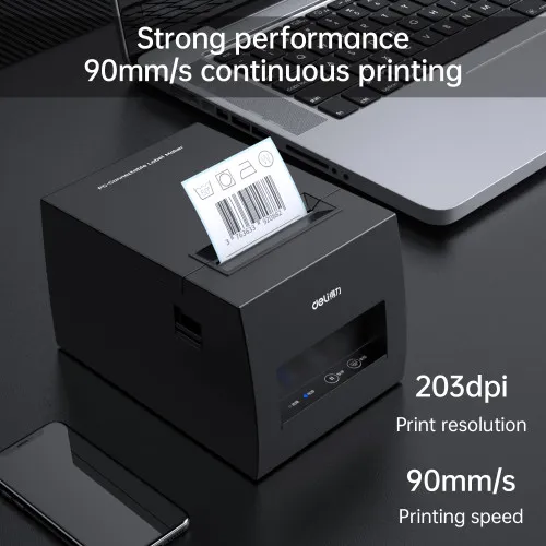 The Deli E886BW Receipt & Label Printer is designed to make everyday printing tasks smoother and faster for shops, small businesses, warehouses, and delivery setups. It supports both receipt and label printing, so you only need one Printer for different types of jobs. With a fast print speed of up to 90 mm per second, it helps reduce wait times, perfect for busy checkout counters or high-paced work environments. This Deli E886BW Receipt Printer supports a maximum print width of 80 mm, giving you flexibility to print standard-sized labels and receipts clearly and efficiently. It’s built for long-term use with a print life of 30km, so you can count on it to keep going without frequent replacements or maintenance. Connectivity is smooth and modern—it works with both USB and Bluetooth, so whether you're using a desktop setup or printing from a mobile device, Deli E886BW fits right in. Setting it up is simple, and switching between wired and wireless modes is hassle-free. Even with all this power, it stays impressively quiet. With a low noise level of just 65 decibels, it won’t distract staff or customers, making it great for calmer retail spaces or quiet offices. Whether you’re printing shipping labels, barcodes, or regular customer receipts, the Deli E886BW Label Printer delivers sharp, reliable results every time. It’s a great fit for POS systems, courier desks, retail checkout counters, and more.