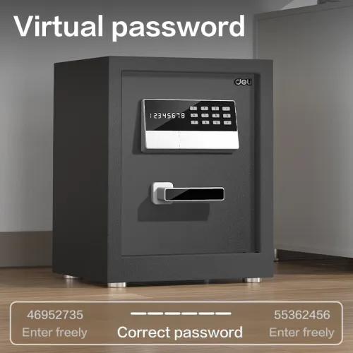The Deli ET621 Password Digital Safe Box is a strong security solution for households, offices, and businesses who demand dependable protection for valuables and documents. The Deli ET621 Digital Safe Box has a robust size of H595 x W410 x D340 mm, providing ample internal capacity while being compact. The Deli ET621 Locker is made of heavy-duty carbon steel with a robust 10/2 mm steel thickness for the door and body, reinforced with four solid locking bolts for further strength. Deli Digital Safe Box security is enhanced with a dual lock design that permits numerous unlocking ways, including key and password combinations such as Password plus Master Key plus Handle, or Master Key plus Emergency Key plus Handle. The electronic button panel with clear display enables for simple password entry, while incorrect password attempts or vibration activate a built-in alert for enhanced security. An external emergency power supply system employing an external battery box improves the utility of the Deli Locker, allowing access even when power is lost. The Deli ET621 Digital Safe Box is powered by four AA dry batteries and comes with five anchor points for safe wall or floor mounting. Inside, the velvet felt inside protects stored things from scratches and damage, while one inner box organizes smaller valuables. With a net weight of 28 kg, the Deli ET621 Locker is both stable and tamper-resistant. Decorative coatings, anti-corrosion coatings, and anti-rust coatings all provide long-term durability and an appealing appearance.