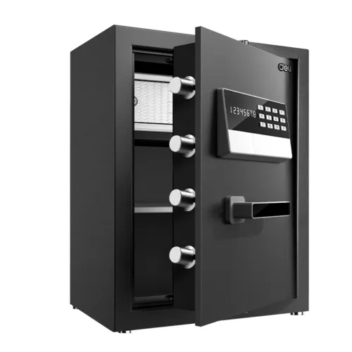 The Deli ET623 Password Digital Safe Box / Locker / Vault is a heavy-duty security solution for homes, workplaces, and commercial areas that demand dependable protection for valuable objects and sensitive data. Deli ET623 Digital Safe Box has a sturdy outside size of H795 x W480 x D400 mm and a spacious inside size of H660 x W410 x D320 mm, allowing ample storage while keeping a professional appearance. Deli ET623 Locker has a reinforced steel thickness of 10/2 mm for both the door and the body, ensuring robust resistance and long-lasting sturdiness. The Deli Digital Safe Box is finished in a traditional black hue that integrates well with modern decor. Deli ET623 Password Digital Safe Box / Locker / Vault is a secure dual lock design with numerous unlocking methods, including Key plus Key and Password plus Key access for further security. The electronic locking system, powered by four AA dry batteries, provides dependable daily operation without requiring sophisticated cabling. Six anchorages for robust wall or floor fastening serve to ensure the stability of the Deli Locker and prevent illegal removal. With a net weight of 41 kg, the Deli ET623 Digital Safe Box strikes an ideal compromise between strength and placement convenience. Inside, the felt-lined inside protects valuables from scratches, and one inner box provides for better organization of minor goods. The Deli ET623 Locker is great for storing cash, jewels, documents, and digital devices safely. The easy password system and key backup provide access in an emergency while providing solid security.