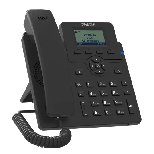 The DINSTAR C60LP Entry Level IP Phone with PoE and without adapter is a perfect communication solution designed for small to medium-sized businesses seeking reliable VoIP performance. Equipped with 2 SIP accounts, this IP phone supports seamless multi-line operations, making it ideal for front desk staff, call centers, and remote teams. Its 5-way audio conferencing capability enhances collaboration by allowing multiple participants to join a single call without compromising sound quality. The HD audio ensures crystal-clear voice transmission, while the 132x64 pixel graphical LCD screen provides a user-friendly interface for easy navigation and call management. With 2-line keys, users can efficiently handle multiple calls, and the PoE support eliminates the need for a separate power adapter, simplifying installation and reducing cable clutter. The IP Phone also features a one-port 10/100Mbps Ethernet connection for stable network performance and EHS support, enabling hands-free communication with compatible headsets. Whether you're upgrading your office phone system or deploying a new VoIP network, the DINSTAR C60LP offers dependable functionality and modern features.