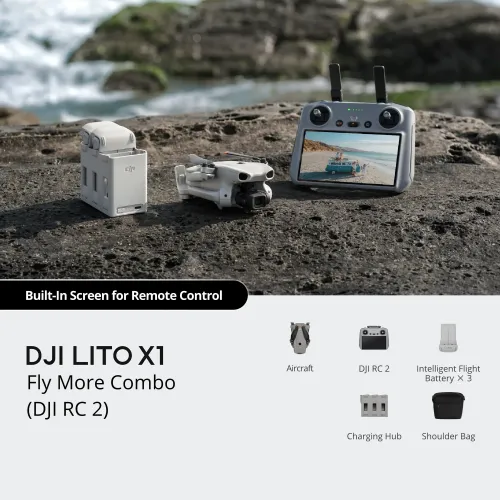 | In The Box | DJI Lito X1 x 1 DJI RC 2 Remote Controller x 1 DJI Lito X1 Intelligent Flight Battery x 3 DJI Lito X1 Charging Hub x 1 DJI Lito X1 Shoulder Bag x 1 DJI Lito X1 Gimbal Protector x 1 DJI Mini 3/Lito Series Spare Propellers (Pair) x 3 Screwdriver x 1 |