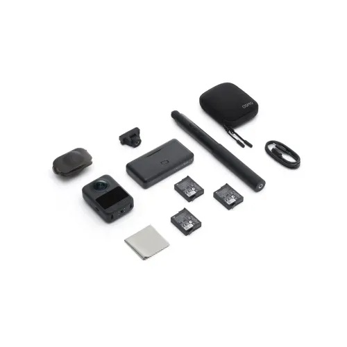 The DJI Osmo 360 Adventure Combo Action Camera is an exclusive 360° imaging device designed for adventurers, creators, and professionals seeking unmatched panoramic content. At its core, the DJI Osmo 360 Adventure Camera features a powerful 1/1.1-inch CMOS sensor with an f/1.9 aperture and a wide ISO range of 100–51200, delivering superb clarity even in challenging light. It captures ultra-high-resolution imagery with 120MP panoramic photos (15520 × 7760) and 30.72MP single-lens shots (6400 × 4800). The DJI Osmo 360 Adventure records immersive panoramic video at 8K up to 50fps, 6K up to 60fps, and 4K at 100fps, while its SuperNight mode enables vibrant low-light footage up to 8K@30fps. The camera offers advanced features such as hyperlapse, timelapse, selfie panorama, and vortex modes, allowing for professional-grade creativity in every shoot. For action-packed scenes, the DJI Osmo 360 Adventure Action Camera ensures smooth footage with RockSteady 3.0 and HorizonSteady stabilization. A 2.0-inch touchscreen (314×556 resolution, 800 cd/㎡ brightness) provides responsive control and clear visibility outdoors. The camera is built tough with an IP68 waterproof rating, enabling underwater use up to 10 meters, making it ideal for adventurous environments. Weighing only 183g and measuring 61×36.3×81 mm, it’s compact and travel-friendly. Connectivity is seamless with Wi-Fi 6 (802.11 a/b/g/n/ac/ax) and Bluetooth 5.1, and audio is crisp with 4 microphones capturing 48kHz 16-bit AAC sound. The DJI Osmo 360 Adventure Combo includes 128GB of built-in storage (105GB usable) and supports microSD cards up to 1TB, including top models from Kingston CANVAS Go! Plus and Lexar SILVER PLUS. Its 1950 mAh Li-ion battery powers up to 100 minutes of 8K/30fps or 190 minutes of 6K/24fps recording. With features like pre-recording, USB-C fast charging, 170 Mbps max video bitrate, and support for HEVC and JPEG formats, the DJI Osmo 360 Adventure Camera delivers industry-leading performance. Whether you're capturing breathtaking landscapes or high-speed action, the DJI Osmo 360 Adventure Combo is your ultimate tool for immersive storytelling and extreme shooting conditions.